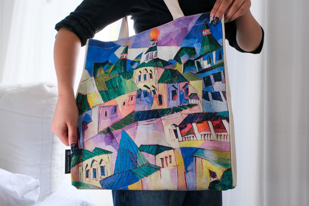 Introducing St. Petersburg, part of our new Lentulov’s Cityscapes series. The original painting, titled Monastery, was created in 1917 using oil on canvas. Depicting a bishop’s courtyard in the New Jerusalem Monastery in Russia, its rich, vibrant colours and striking, geometric composition immediately drew us in to this piece.